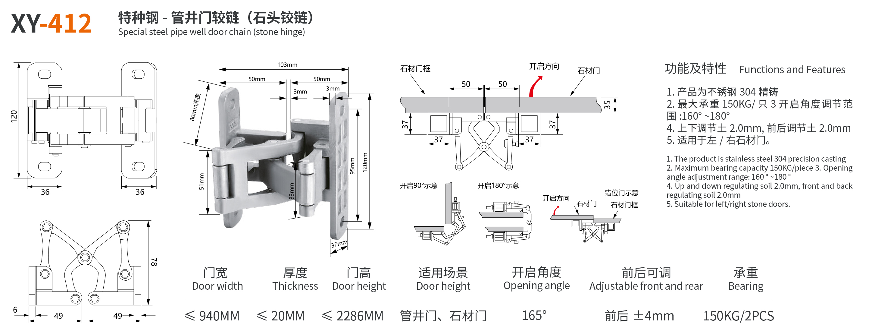 XY-412 特种钢 - 管井门较链 ( 石头铰链 )