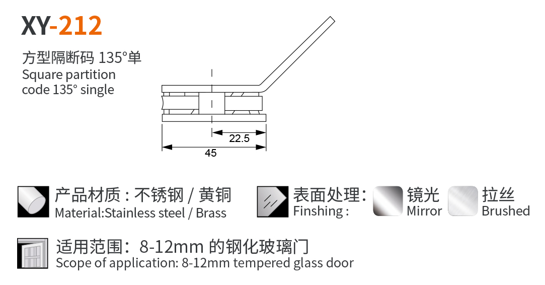 XY-212 方型隔断码 135° 单