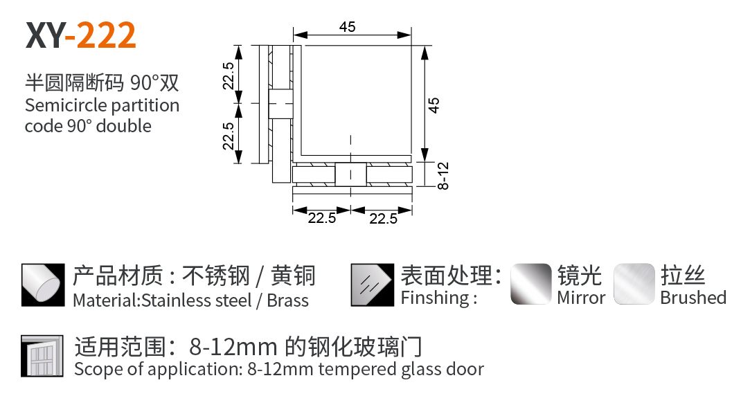 XY-222 半圆隔断码 90° 双