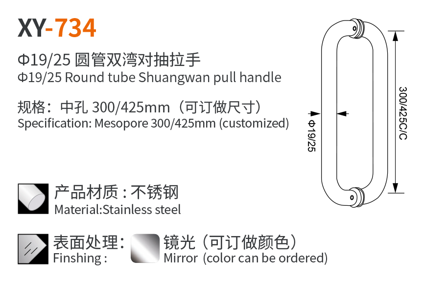 XY-734 Ф19/25 圆管双湾对抽拉手