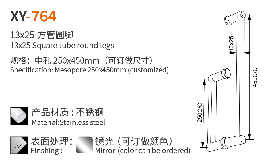XY-764 13x25 方管圆脚