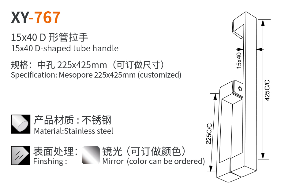 XY-767 15x40 D 形管拉手