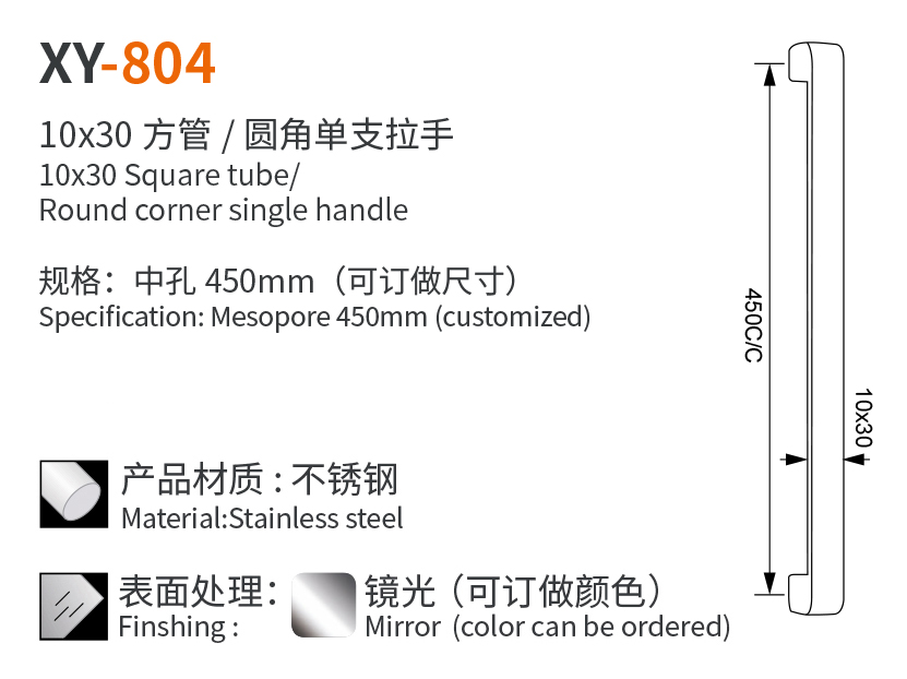 XY-804 10x30 方管 / 圆角单支拉手