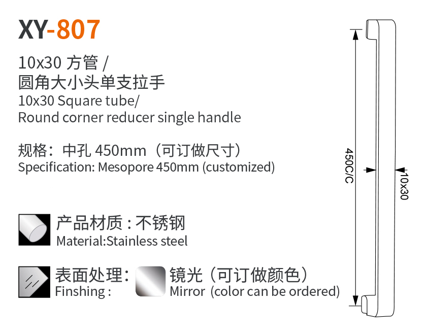 XY-807 10x30 方管 / 圆角大小头单支拉手